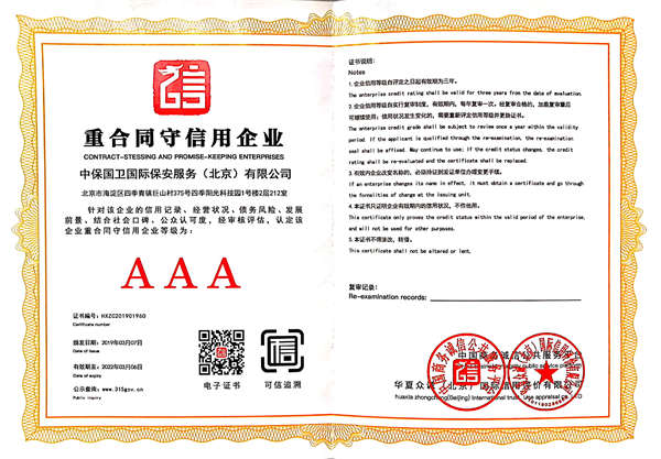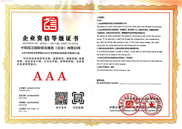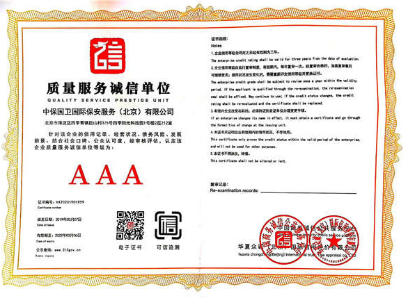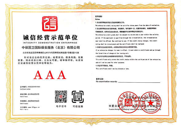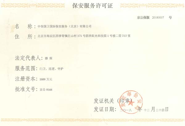 中保國衛國際保安服務(北京)有限公司,屬中保國衛集團旗下子公司。能全方位的為大型客戶提供優(yōu)質的安保、押運服務,是集人防和技防于一體的新型正規(guī)化綜合安保押運服務企業,提供人防、物防、技防、聯網報*、非武裝押運等安防相關的一站式服務。 公司在國內多省設立有分公司及分支機構,著重提升安全押運、智能技術押運及安全技術防范相關的服務,業務范圍覆蓋全國一、二線城市、港澳地區以及海外地區。安保方面主要為政府機構、金融機構、企事業單位、醫療衛生、高等院校、工業園區、大型商場、高檔住宅、智能商務樓、大型活動提供門衛、守護、巡邏、押運(非武裝)、安全檢查、保安特勤、私人護衛、消防中控、安全技術防范、遠洋護航等全方位服務,同時面向國際市場,為中資企業在“一帶一路”沿線國家投資提供境外安保服務。 >> 更多內容 |